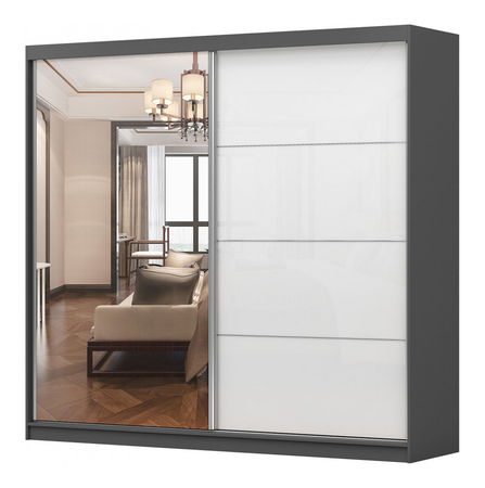 Šatníková skriňa Mebur 35 230 (grafit + zrkadlo + lesk biely)