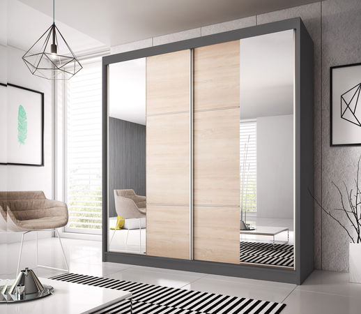 Šatníková skriňa Mebur 36 200 (grafit + dub sonoma + zrkadlo)