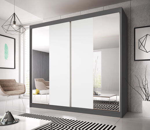 Šatníková skriňa Mebur 38 180 (grafit + biela + zrkadlo)