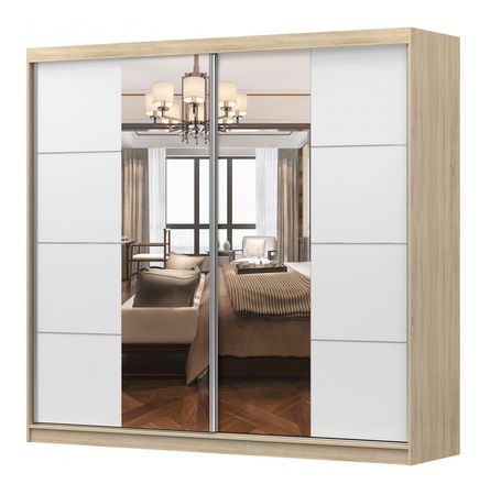 Šatníková skriňa Mebur 38 230 (dub sonoma + biela + zrkadlo)