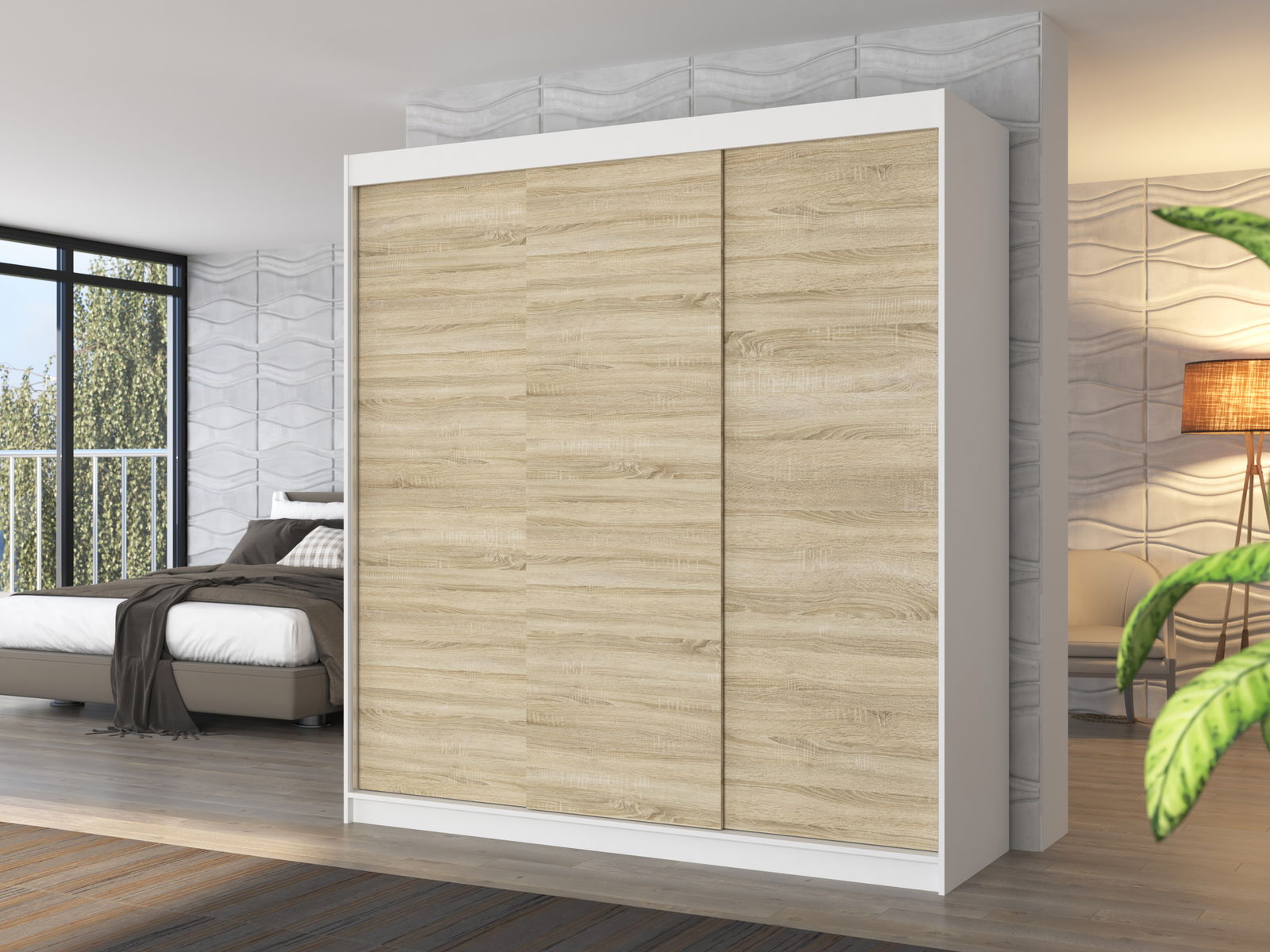 ZobraziťŠatníková skriňa Meggie (biela + dub sonoma) o výške 215 cm, šírke 200 cm a hĺbke 58 cm je ideálnou voľbou pre každého, kto hľadá kvalitný a funkčný kus nábytku do spálne, šatne či predsiene. Táto skriňa disponuje dostatočným úložným priestorom, ktorý vám pomôže udržať vašu izbu čistú a upratanú. Skriňa je vyrobená z kvalitných materiálov a je dokonale zladená v bielom a dube sonoma. Jej moderný dizajn a vysoká kvalita vyrobenia zaručujú, že sa bude skvele hodíť do akéhokoľvek interiéru a poslúži vám po mnoho rokov.