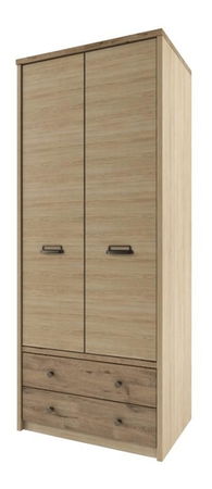 Šatníková skriňa Mirach 2D2S s výškou 210,5 cm a hĺbkou 59 cm je ideálna pre študentské izby. Skriňa ponúka dostatok miesta pre vaše oblečenie a iné osobné veci. Vnútri nájdete vešiakovú tyč a dve zásuvky na dolnej časti. Skriňa je vyrobená z DTD laminovaného materiálu a má príjemný dizajn v dub madura a wellington farbe. Jej rozmer je 85,8x59,3x210,4 cm, hrúbka materiálu je 16 mm a zvyšných častí je 32/28 mm. Skriňa obsahuje vešiakový systém a dva šuplíky. Doprava prebieha v demonte.