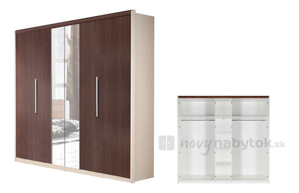 Päťdverová šatníková skriňa so zrkadlom, za ktorým sa nachádzajú poličky. Ostatný priestor skrine je určený na zavesenie Vášho oblečenia.