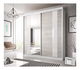 Rozmerná vešiaková skriňa s dvomi posuvnými dverami so zrkadlom. Vo vnútri nájdete vešiakovú tyč a police.