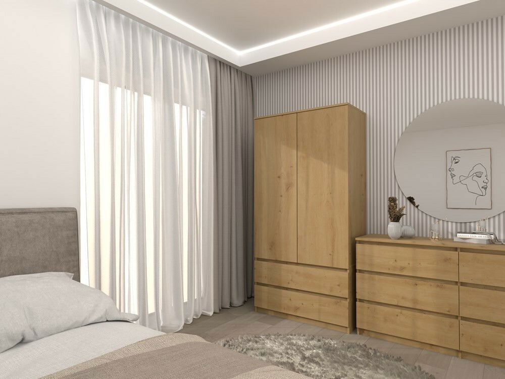 Šatníková skriňa Musecalo 1 v elegantnej farbe dub artisan je ideálnym riešením pre moderné interiéry, či už v spálni, alebo v kancelárii. Tento praktický nábytok ponúka dostatok úložného priestoru pre oblečenie a dokumenty, pričom jeho robustná konštrukcia z kvalitnej laminovanej drevotriesky zaručuje odolnosť voči poškriabaniu a vlhkosti. Inovatívny systém TIP-ON umožňuje jednoduché otváranie dverí bez úchytiek, čo zvyšuje estetiku a pohodlie pri používaní. Musecalo 1 je skvelou voľbou pre tých, ktorí ocenia spojenie funkčnosti a moderného dizajnu.