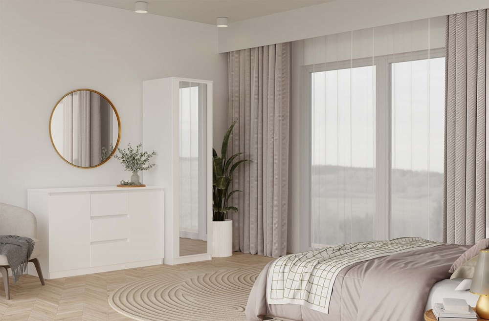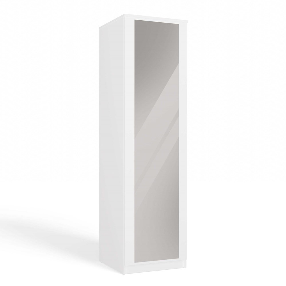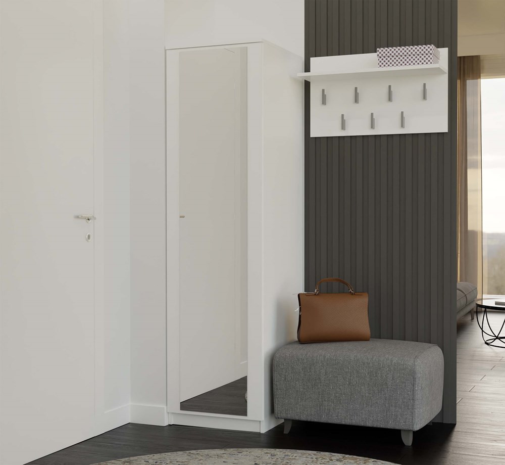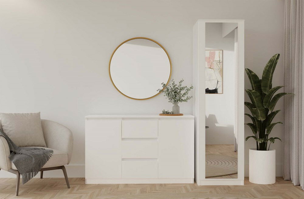 Šatníková skriňa Musecalo 2 v elegantnej bielej matnej farbe je ideálnym riešením pre malé priestory, ako sú spálne, predsiene či kancelárie. Jej moderný dizajn s veľkým zrkadlom na prednej strane opticky zväčšuje priestor a dodáva mu vzdušnosť. Vnútorné usporiadanie je prispôsobiteľné, pričom obsahuje štyri poličky a drážku na oblečenie, čo zaručuje maximálnu funkčnosť. Systém TIP-ON umožňuje jednoduché otváranie dverí bez úchytiek, čím sa zvyšuje estetika a komfort používania. Musecalo 2 je skvelou voľbou pre každého, kto hľadá praktický a štýlový nábytok.