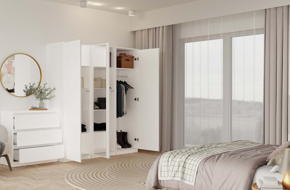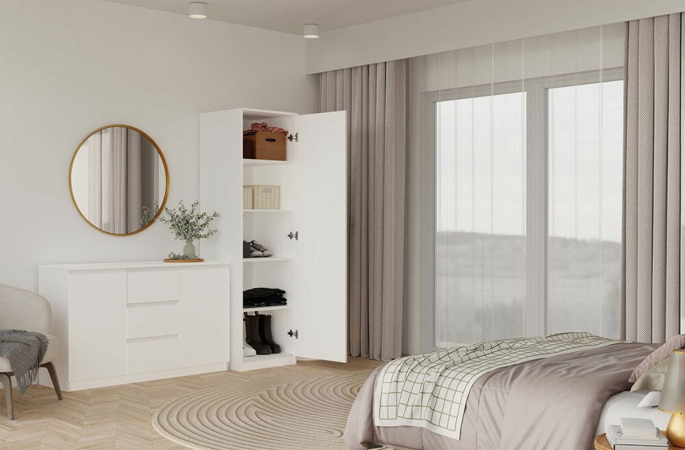 Šatníková skriňa Musecalo 2 (biela) (so zrkadlom)