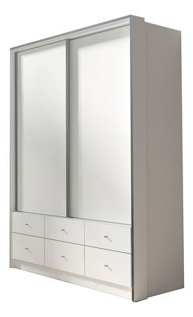 Šatníková skriňa Narcius (biela) s výškou 218 cm a hĺbkou 66 cm je dokonalým kúskom nábytku pre váš domov. Táto samostatne stojaca skriňa má dve posuvné dvere a jej vnútro je dobre členené, takže môžete ľahko uložiť vaše šaty a oblečenie. Vnútri nájdete dve šatníkové tyče pre zavesenie blúzok a šiat, dve poličky v hornej časti a až šesť praktických zásuviek v spodnej časti skrine. Skriňa je vyrobená z drevotriesky a ochranné ABS hrany zabezpečia jej dlhšiu životnosť. Skriňu zdobí zaujímavé farebné prevedenie a má matné úchytky v tvare gombíkov. Šatníková skriňa Narcius neobsahuje nožičky a zrkadlo, má guľočkový systém otvárania zásuviek a posuvné dvere. Skriňa sa dodáva v štyroch balíkoch a jej celková hmotnosť je 162 kg.