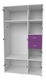 Pohodené nohavice, tričká, tenisky, knihy a hračky na zemi - neporiadok v detskej izbe bude minulosťou. Šatníková skriňa má v ľavej časti vešiakovú tyč. V pravej časti sa nachádzajú police a dve zásuvky uprostred. Farebné prevedenie šatníkovej skrine je biela s fialovými prvkami.
