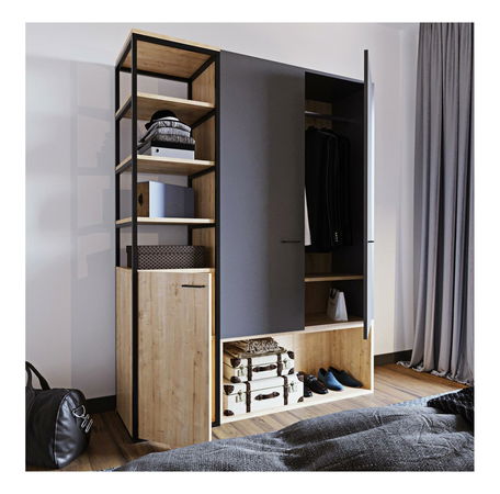 Šatníková skriňa Otis (antracit + dub)