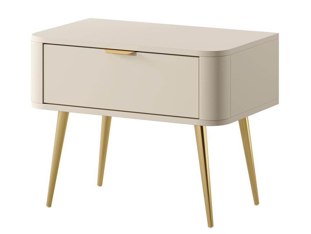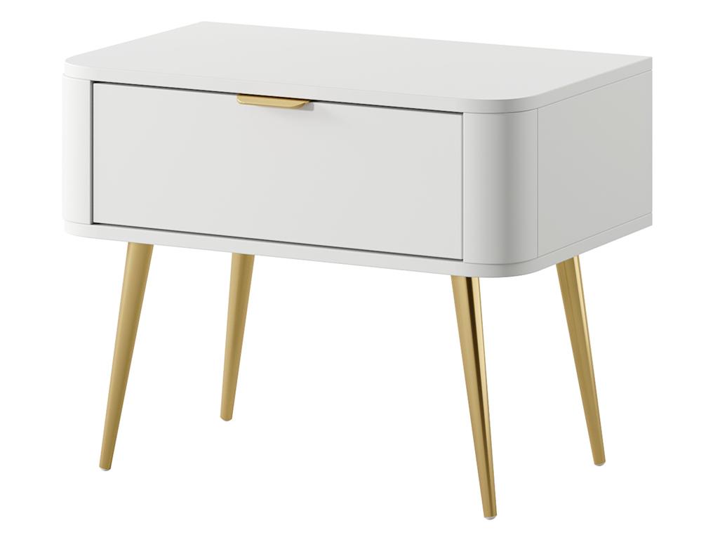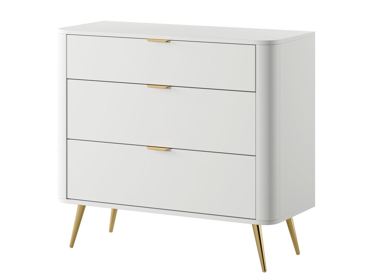 Nudia vás klasické tvary nábytku? Chcete zmeniť svoj byt? Vyberte si kolekciu a prekvapte všetkých svojich hostí Skriňa je moderným kusom nábytku, ktorý prekvapí svojim tvarom, dodávajú eleganciu a sú vhodné pre deti. Skriňa má dve priestranné zásuvky, do ktorých sa zmestia všetky drobnosti oblečenia alebo náhradné súpravy posteľnej bielizne či uterákov, a veľký výklenok s tyčou na zavesenie oblečenia. Moderný tvar dodáva interiéru ľahkosť a robí ho útulnejším Detaily produktu: korpus a čelá z laminovanej nábytkovej dosky Kronospan 6459 SM vo farbe Platinum White, konštrukcia vystužená ABS hranami, ktoré mu dodávajú stabilitu a odolnosť, vysoké oceľové nohy v chrómovej úprave. -pozlátené, majú malé, biele nožičky, ktoré zabraňujú poškriabaniu podlahy, zásuvky umiestnené na 27 mm guličkových vodidlách, jemné zlato, brúsené úchytky dodávajú funkčnosť a sú štýlu ozdobou čiel.