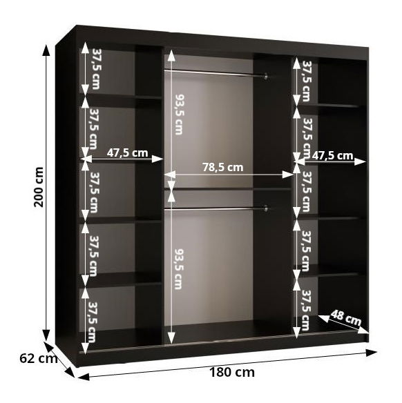 ZobraziťŠatníková skriňa Riven 1 180 (biela matná + čierna matná) je moderná a elegantná vo svojom dizajne. S výškou 200 cm a šírkou 180 cm poskytuje dostatok miesta na odkladanie oblečenia a doplnkov. Materiál skrine zaručuje jej dlhú životnosť a odolnosť voči poškodeniu. Biela matná a čierna matná farba skrine sa hodí do každého interiéru. Skriňa má hĺbku 62 cm, čo zabezpečuje dostatok miesta pre vašu garderóbu. Skrine Riven 1 180 je ideálna pre tých, ktorí hľadajú funkčnosť a štýlový dizajn v jednom produkte.