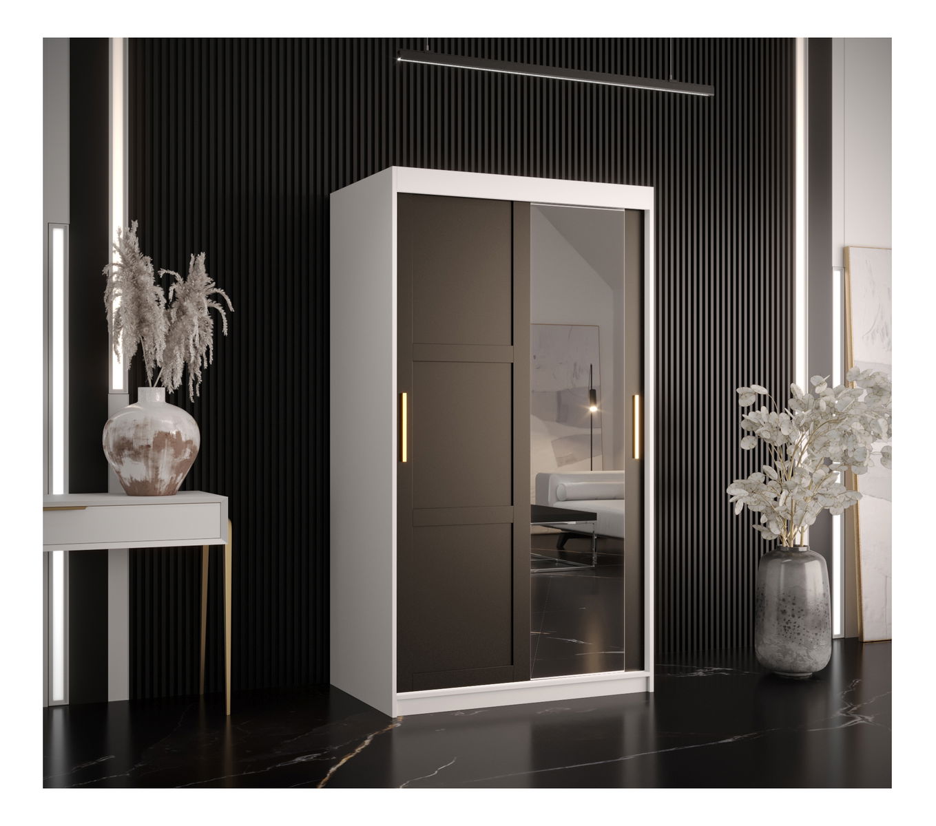Šatníková skriňa Riven 2 100 (biela matná + čierna matná) (so zrkadlom)
