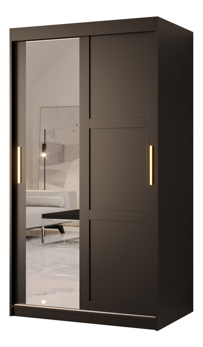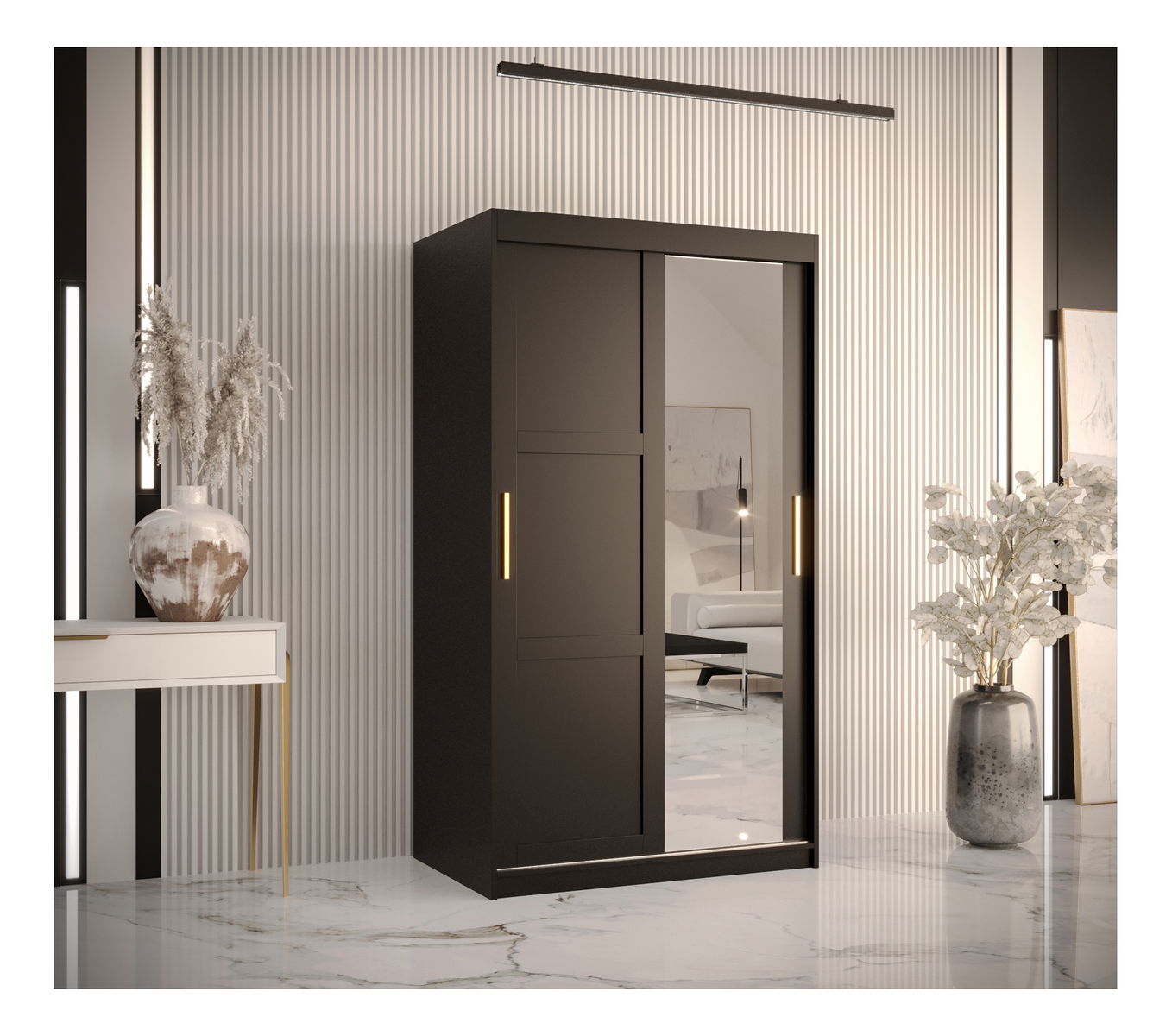 Šatníková skriňa Riven 2 100 (matná čierna) (so zrkadlom)