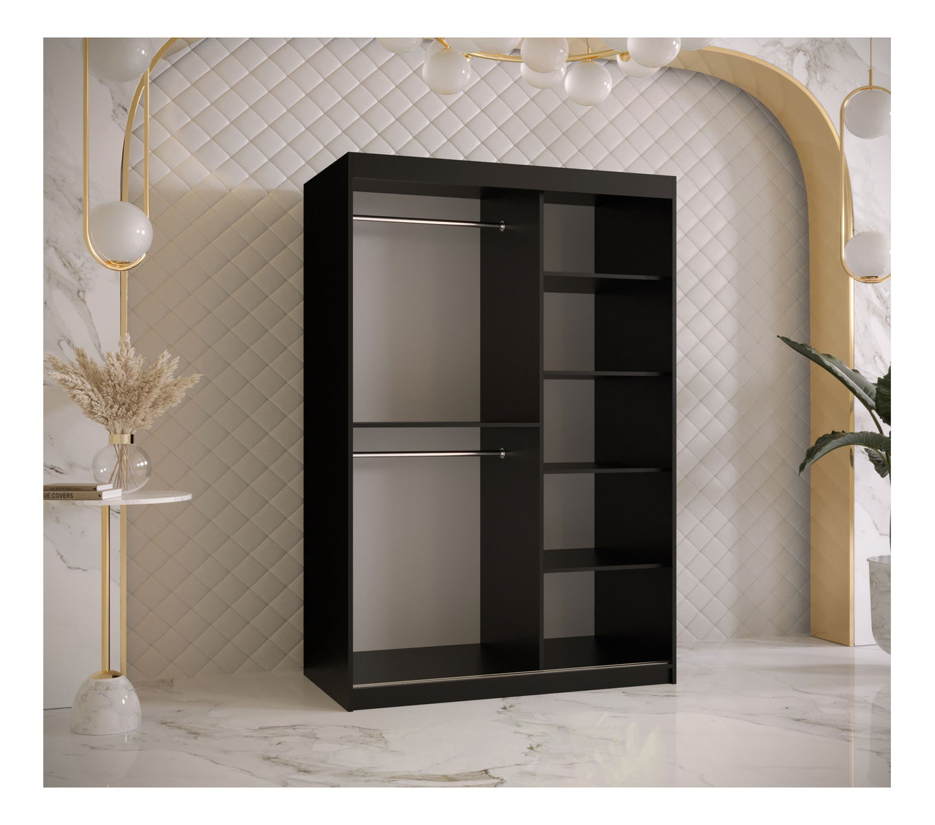 ZobraziťŠatníková skriňa Riven 2 - biela matná s čiernou matnou farbou a so zrkadlom je ideálnym doplnkom pre každú spálňu. S výškou 200 cm a šírkou 120 cm ponúka dostatok miesta pre uloženie vašich oblekov, košieľ a ďalšieho oblečenia. Hĺbka skrine je 62 cm, čo zaručuje dostatok priestoru na všetky vaše veci. Skriňa má moderný vzhľad a jej biele a čierne matné farby vytvárajú štýlový kontrast. Skrine sú vyrobené z kvalitných materiálov, ktoré zaručujú ich dlhú životnosť a odolnosť voči poškodeniu. S touto šatníkovou skriňou budete mať vaše oblečenie vždy poriadne uskladnené a vo vašej spálni vytvoríte moderné a elegantné prostredie.