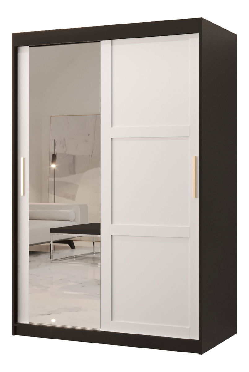 Šatníková skriňa Riven 2 120 (čierna matná + biela matná) (so zrkadlom)