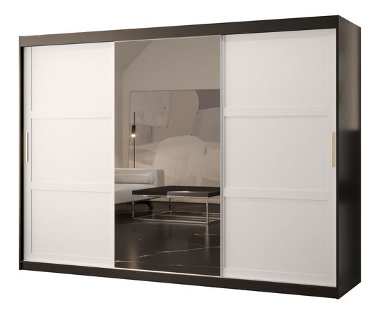 Šatníková skriňa Riven 2 250 (čierna matná + biela matná) (so zrkadlom)