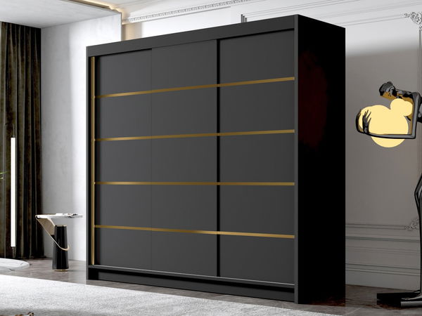 Šatníková skriňa s posuvnými dverami Fozzurt VII 200 (čierna + zlatá)