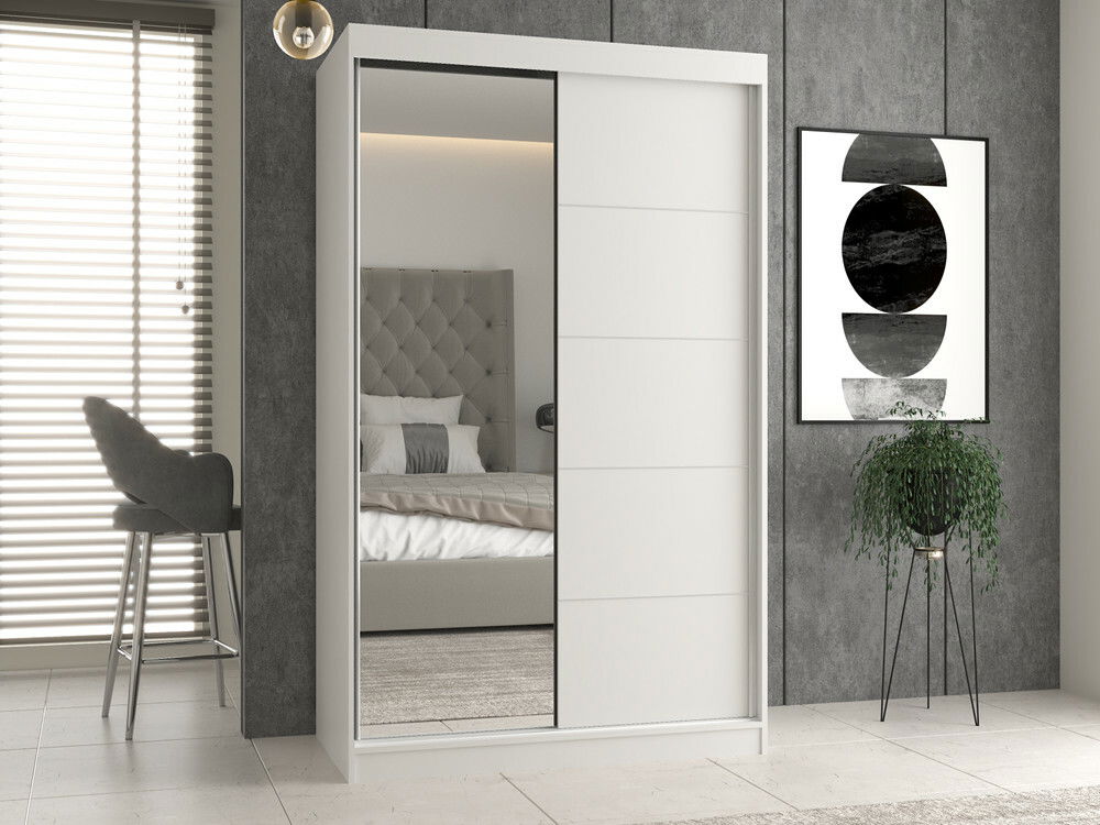 Šatníková skriňa s posuvnými dverami Igatossa 120 E (biela) (so zrkadlom)