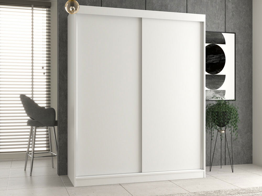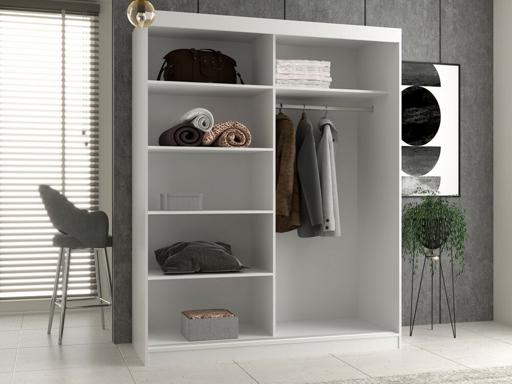 Šatníková skriňa s posuvnými dverami Igatossa 160 A v elegantnej bielej farbe je ideálnym riešením pre každú spálňu, kde je potrebné efektívne využiť priestor. Jej minimalistická konštrukcia a praktické poličky spolu s tyčou na zavesenie oblečenia zabezpečujú prehľadnosť a poriadok. Vyrobená z kvalitnej laminovanej drevotriesky s hrúbkou 16 mm, skriňa sa vyznačuje vysokou odolnosťou a atraktívnym vzhľadom. Kvalitné ABS hrany zvyšujú jej trvanlivosť, čo z nej robí skvelý doplnok do vášho domova.