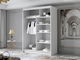 ZobraziťVarentona III 120 v sebe spája štýl, kvalitu a funkčnosť. Za svoj jedinečný dizajn vďačí ozdobným vložkám v matnej zlatej farbe. Šatníková skriňa do spálne ponúka značnú kapacitu. V jej vnútri nájdete široké, priestranné police a priestor na vešiaky. Šatníková skriňa so zrkadlom a posuvnými dverami je praktickou voľbou. Budete ťažiť z priehľadnosti a optického zväčšenia miestnosti. Okrem toho vás bude s radosťou sprevádzať pri výbere vášho stylingu na večer alebo na deň v práci či na univerzite.