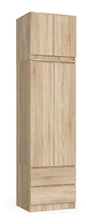 Šatníková skriňa Sahil (dub sonoma) je vysoká 234 cm, široká 60 cm a hlboká 51 cm. Táto skriňa je vyrobená z kvalitného dubového dreva vo farebnom odtieni sonoma, čo jej dodáva elegantný a moderný vzhľad. Skriňa ponúka dostatok úložného priestoru pre vašu oblečenie, obuv a ďalšie osobné veci. Súčasťou skrine sú praktické police, vešiaky a výsuvné zásuvky, vďaka ktorým bude vaša zostava oblečenia vždy usporiadaná a prehľadná. Prostredníctvom elegantného dizajnu a kvalitnej výroby je táto šatníková skriňa Sahil ideálnym doplnkom do vášho interiéru.