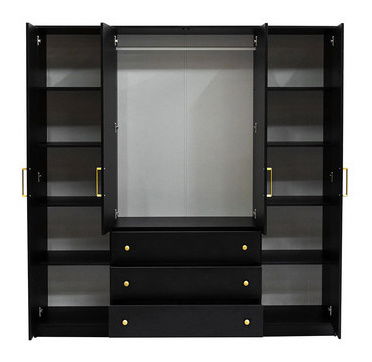 ZobraziťŠatníková skriňa je ideálnou voľbou pre tých, ktorí hľadajú pohodlie a štýl. Veľká šatníková skriňa Senila D4 ponúka priestranný interiér. Dobre zorganizovaný priestor zjednodušuje skladovanie vecí patriacich viacčlennej rodine. Početné police poskytujú dostatok miesta pre zložené mikiny, nohavice a polokošele. Na druhej strane môžeme na dlhú tyč zavesiť bundy, šaty a zimné kabáty. Zóna umiestnená v strede šatníka je doplnená hlbokými zásuvkami. Naaranžujete do nich galantériu, spodnú bielizeň, ale aj štýlové doplnky pre mnoho rôznych štýlov. Výhodou šatníkovej skrine Senila D4 so zásuvkami je aj jej minimalistický vzhľad. Pýchou geometrického tvaru sú štýlové rukoväte. Farebnosť týchto detailov dokonale ladí so sýtymi farbami nábytku. Rozmery: šírka: 196 cm, výška: 200 cm, hĺbka: 58 cm Prevedenie: 16 mm hrubá laminovaná doska, PVC lemovanie, rukoväte: hliník v zlatej farbe, zapustený pánt s tichým zatváraním, zásuvky: valčekové vedenie L-450, vo vnútri šatníka sa nachádza tyč na šaty a police Záruka: 24 mesiacov