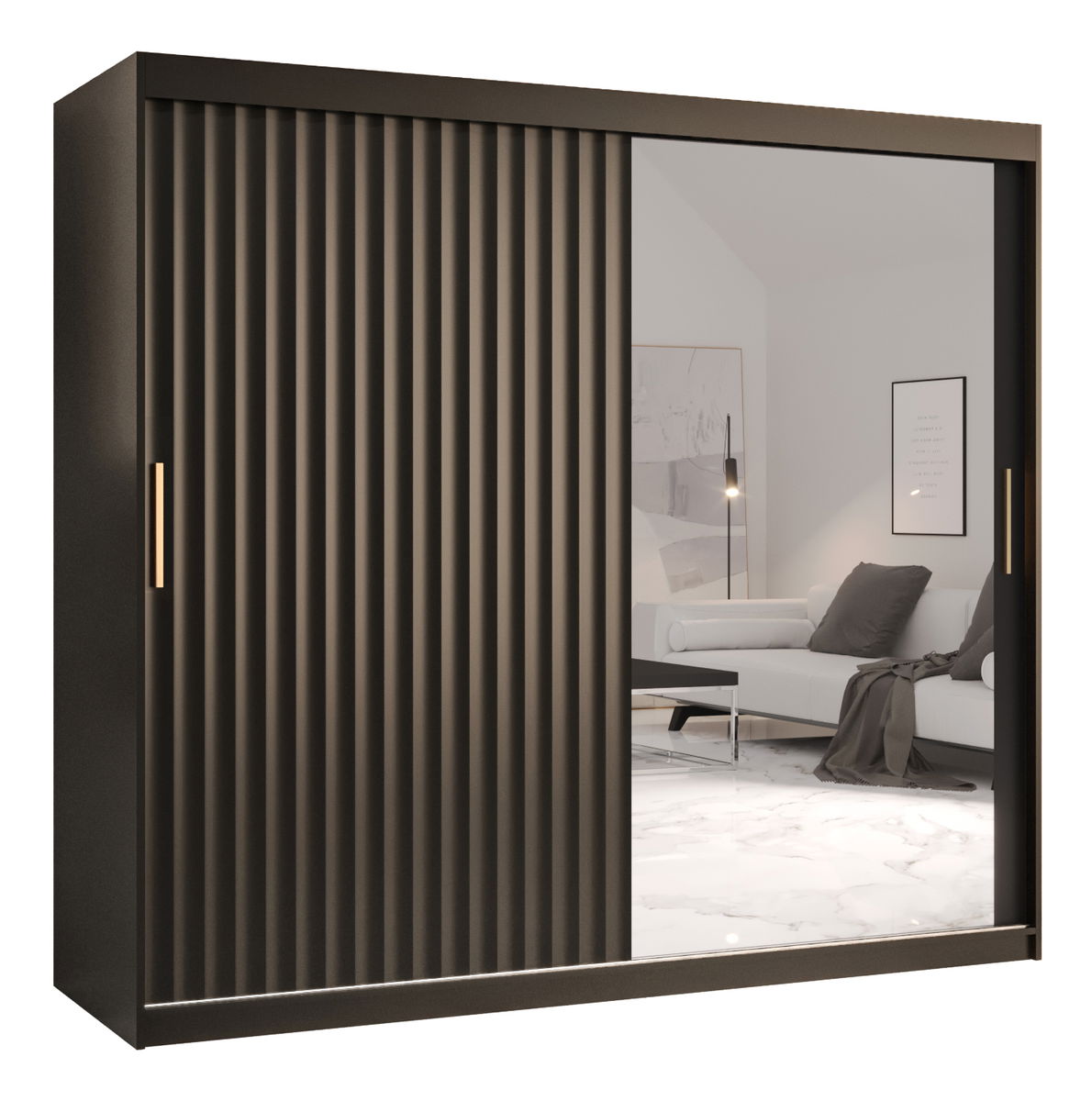 - Šatníková skriňa so zrkadlom 200 cm Riana Wa 2 200 (čierna)