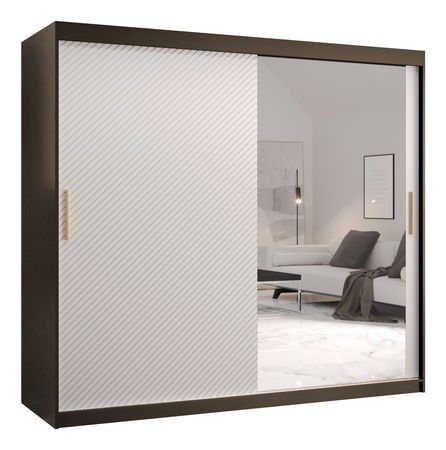 Šatníková skriňa so zrkadlom 250 cm Riana Slimo 2 250 (čierna + biela matná)