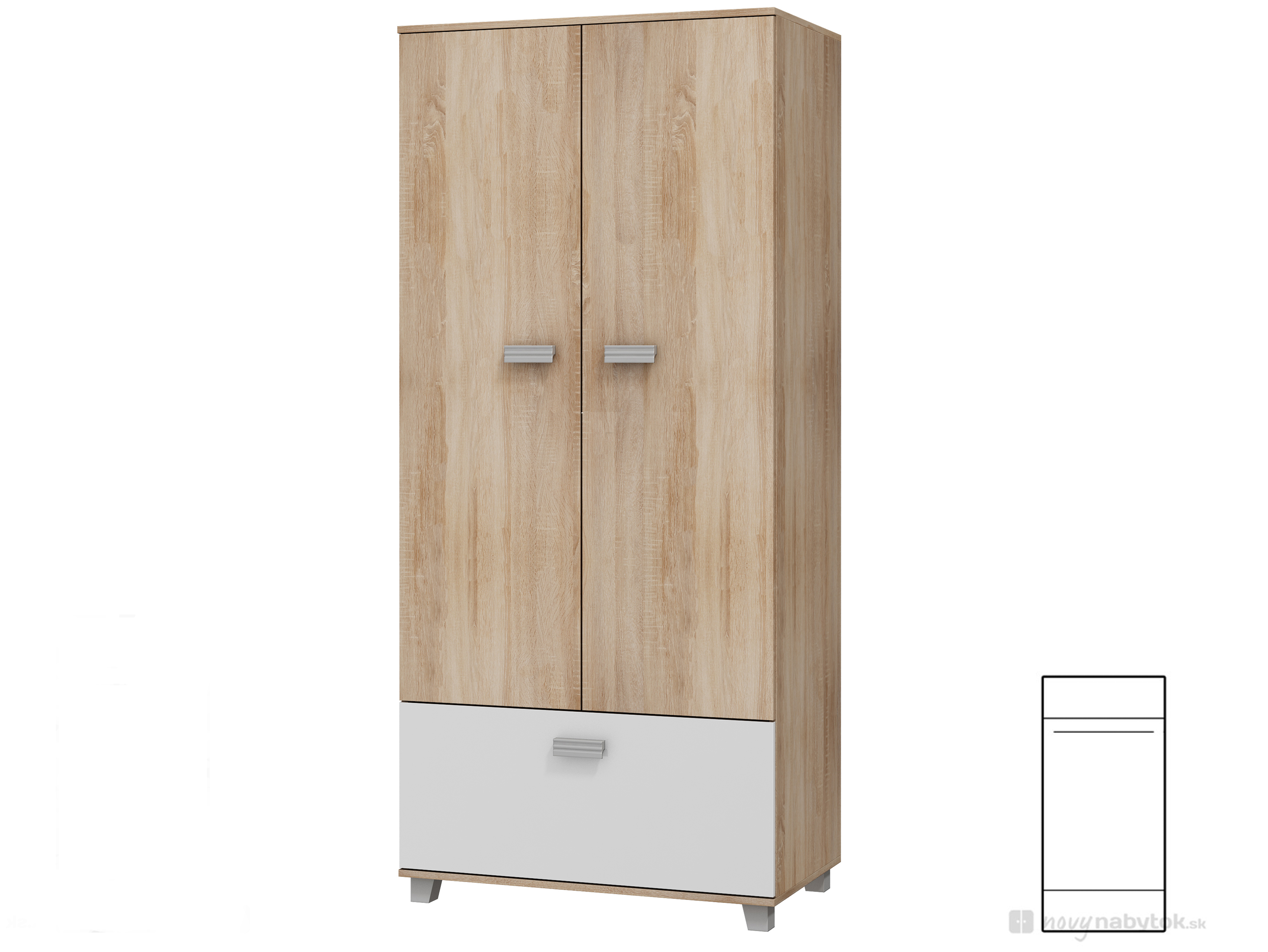 Šatníková skriňa Solomon SOL 07 s výškou 200 cm a hĺbkou 54 cm je dokonalá voľba pre každú spálňu alebo šatník. Skriňa je vyrobená z kvalitného materiálu a má dve dvere, ktoré poskytujú dostatok priestoru pre vaše oblečenie, topánky alebo doplnky. Skriňa je vyvedená v krásnej farbe Slivka + Biela matná, ktorá dodá vašej spálni alebo šatníku moderný a elegantný vzhľad. Vnútri skrine nájdete množstvo polic a vešiakov, takže si môžete ľahko a rýchlo zorganizovať svoje veci. Šatníková skriňa Solomon SOL 07 je skvelou investíciou pre každého, kto hľadá kvalitné a elegantné riešenie na úloženie svojho oblečenia.
