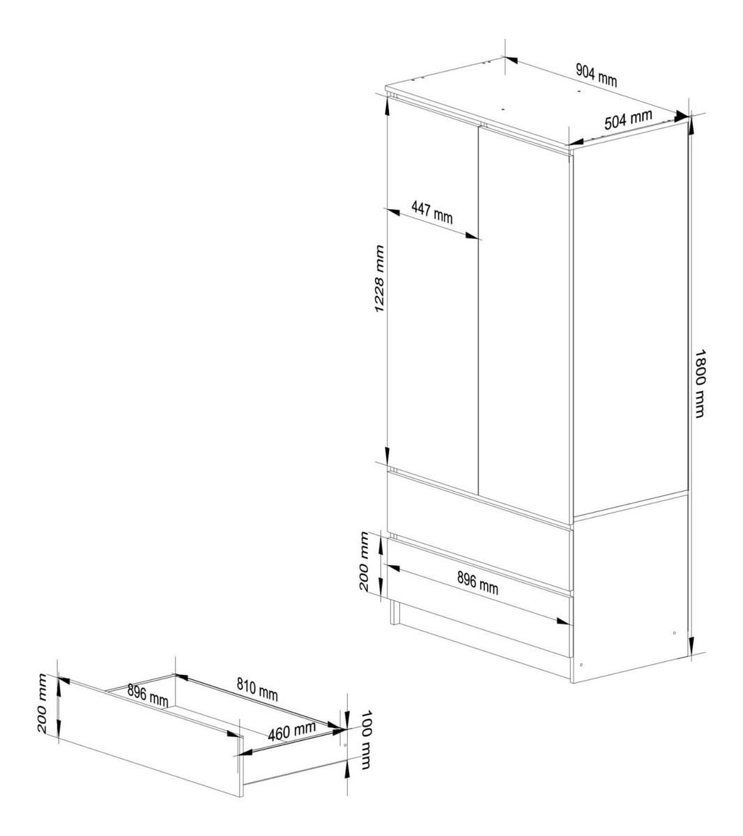 Šatníková skriňa Submarino (biela) (so zrkadlom)