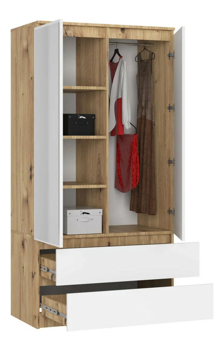 Šatníková skriňa Submarino (dub artisan + biela) (so zrkadlom)