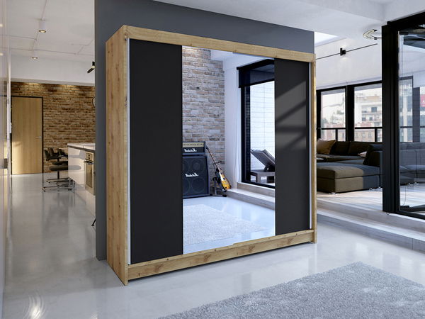 ZobraziťŠatníková skriňa - Tatiana 2 (artisan + čierna) je ideálna voľba pre tých, ktorí hľadajú šatníkovú skriňu s veľkou kapacitou a štýlovým dizajnom. Jej rozmery 215 x 180 x 58 cm vám poskytnú dostatok miesta na uloženie oblečenia pre každú sezónu. Dvere skrine sú elegantne pokryté zrkadlovými panelmi, ktoré dodávajú priestoru optickú väčšiu. Vnútro skrine je dobre premyslené, so skladacími policami a závesnými tyčami, aby ste mohli jednoducho a systematicky usporiadať svoje veci. Táto skriňa je tiež charakteristická atraktívnou farebnou kombináciou a zaujímavým dizajnovým riešením, ktoré prispieva k vytvoreniu pokojnej a harmonické atmosféry vo vašej miestnosti.