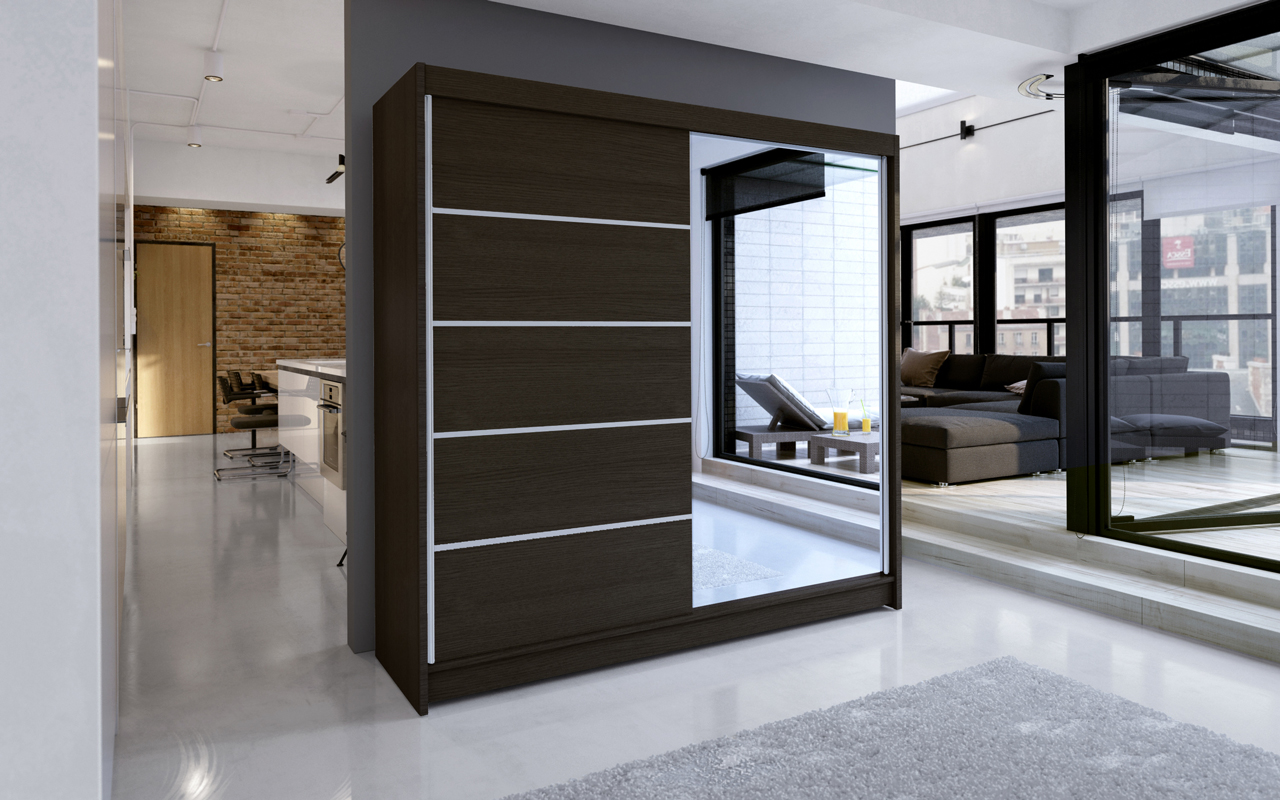 Šatníková skriňa Tatiana 3 (čokoládová) s výškou 215 cm a hĺbkou 58 cm je ideálnou voľbou pre tých z vás, ktorí hľadajú skriňu s dostatočnou kapacitou a štýlovým dizajnom. Skriňa má rozmery až 215 x 180 x 58 cm, čo znamená, že do nej zmestíte oblečenie na každé ročné obdobie. Dvere skrine sú pokryté zrkadlovými panelmi (okrem jednej skrine z modelovej rady) a drevotrieskou s povrchovou úpravou. V skrini nájdete poličky a závesné tyče. Skriňa má príťažlivú farebnú kombináciu a zaujímavé dizajnové riešenie, ktoré vám umožnia vytvoriť pokojnú a harmonickú atmosféru v miestnosti. Skriňa je vyrobená z laminovanej dosky o hrúbke 16 mm a má posuvný systém dverí. Hliníkové vodidlá od firmy Sevroll a hliníkové kľučky zabraňujú ohýbaniu dverí. Skriňa je dodávaná s kľučkou vo forme hliníkovej lišty pozdĺž dverí. V balení nájdete všetko potrebné pre samostatnú montáž, vrátane všetkých prvkov a montážneho návodu. Skriňa má 2 presúvne dvere.
