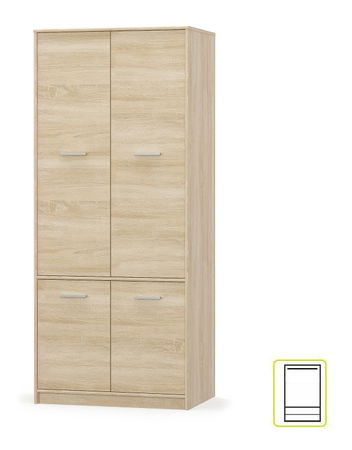 Oblečenie, či iné doplnky si môžu Vaše deti odložiť do tejto krásnej šatníkovej skrine jednoduchého, no moderného dizajnu. Skriňa poskytne dostatok úložného priestoru. Farebné prevedenie skrine je dub sonoma.
