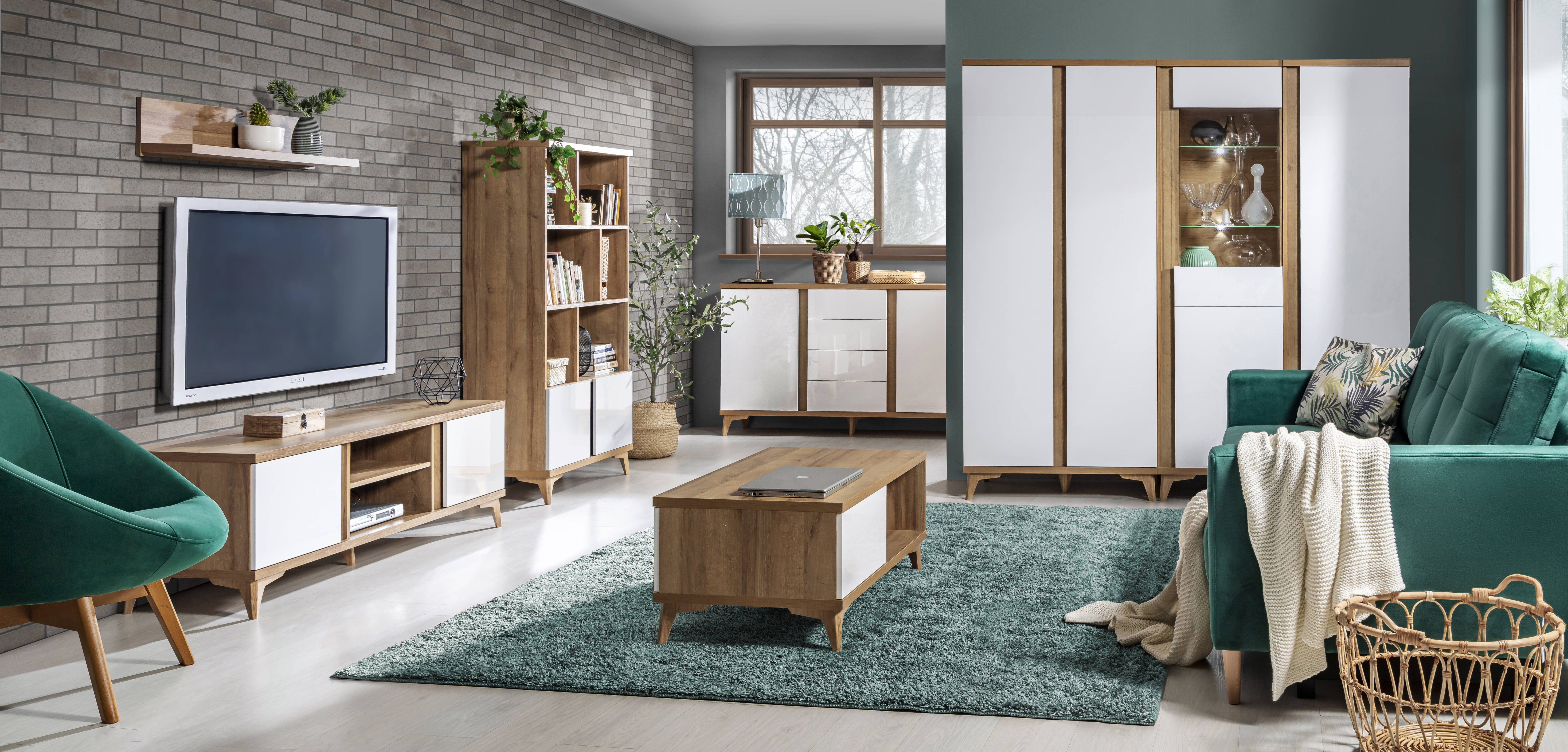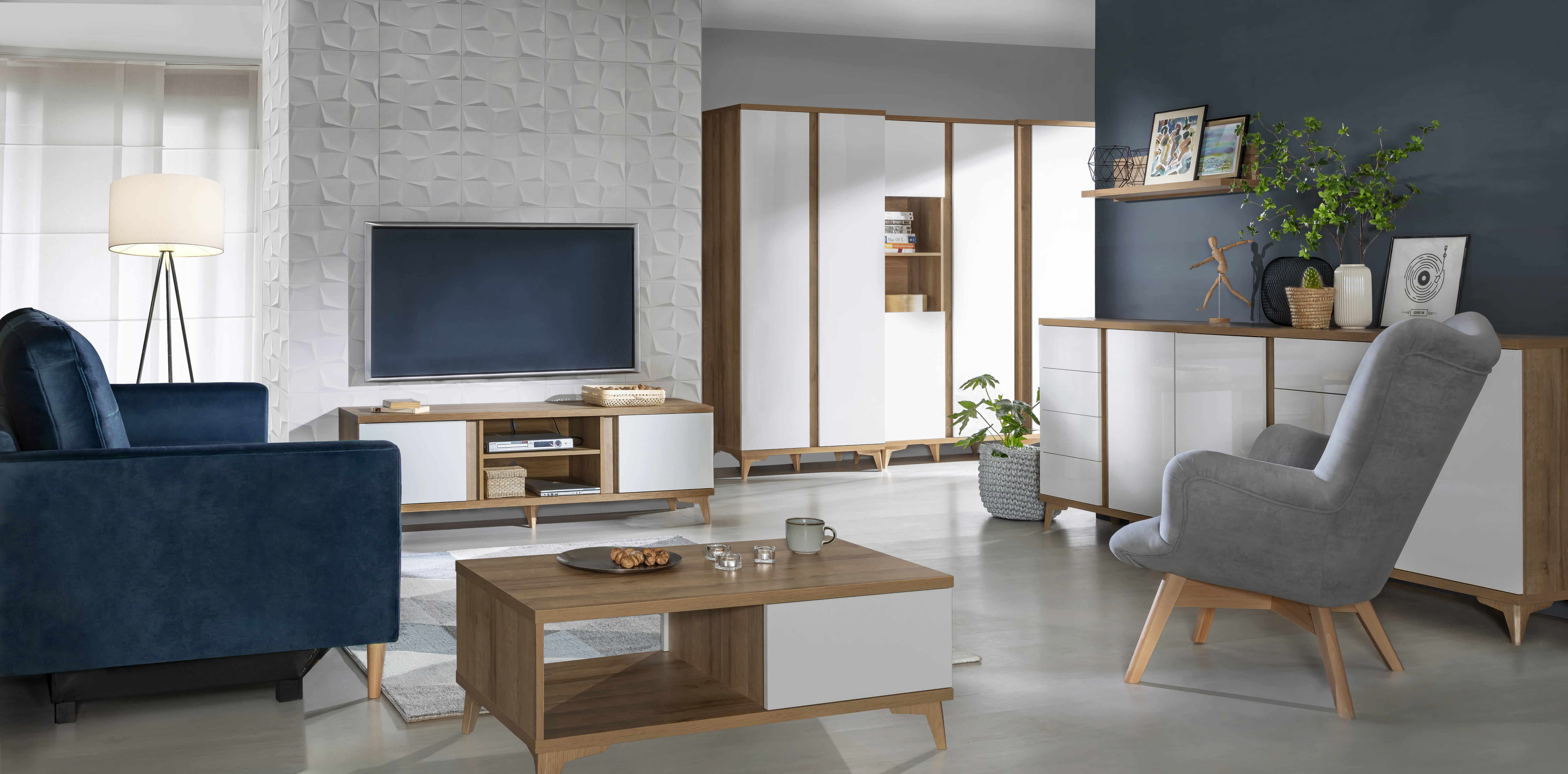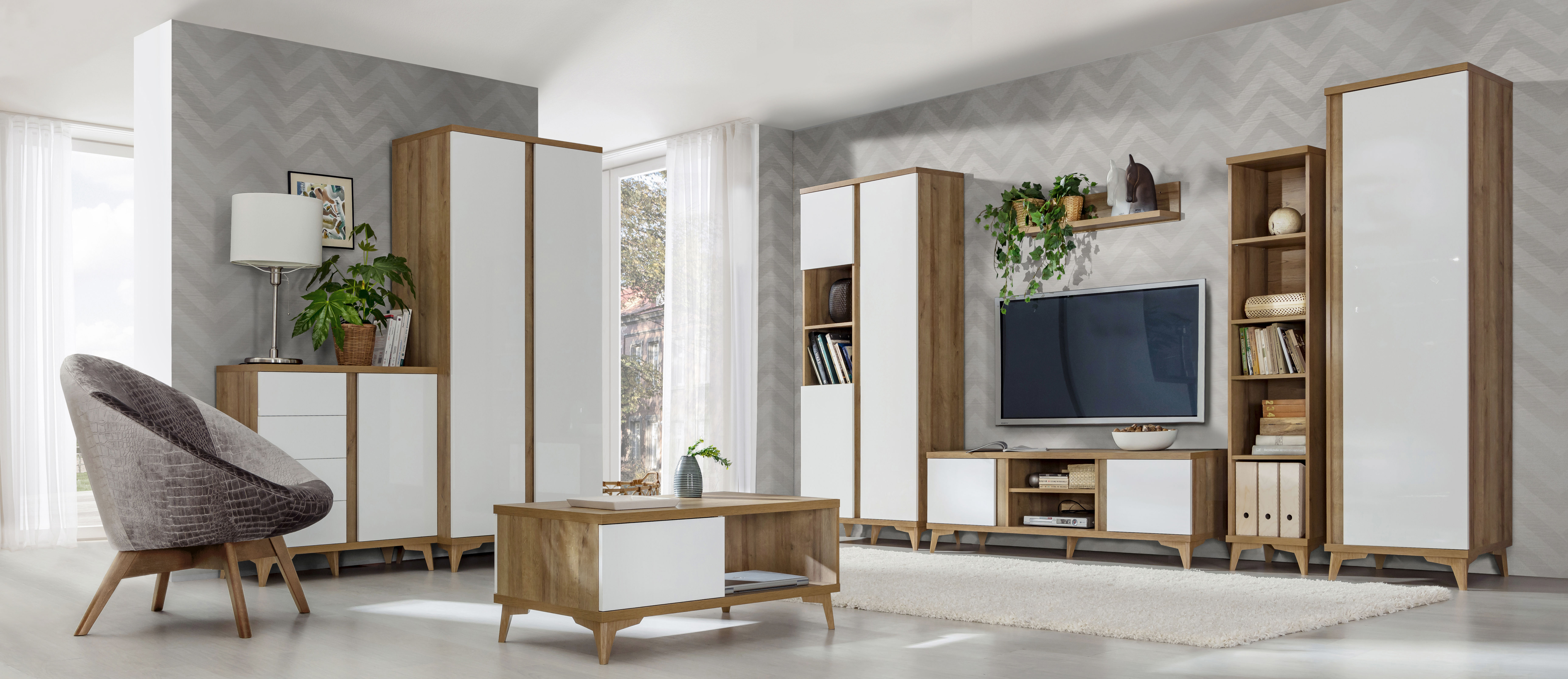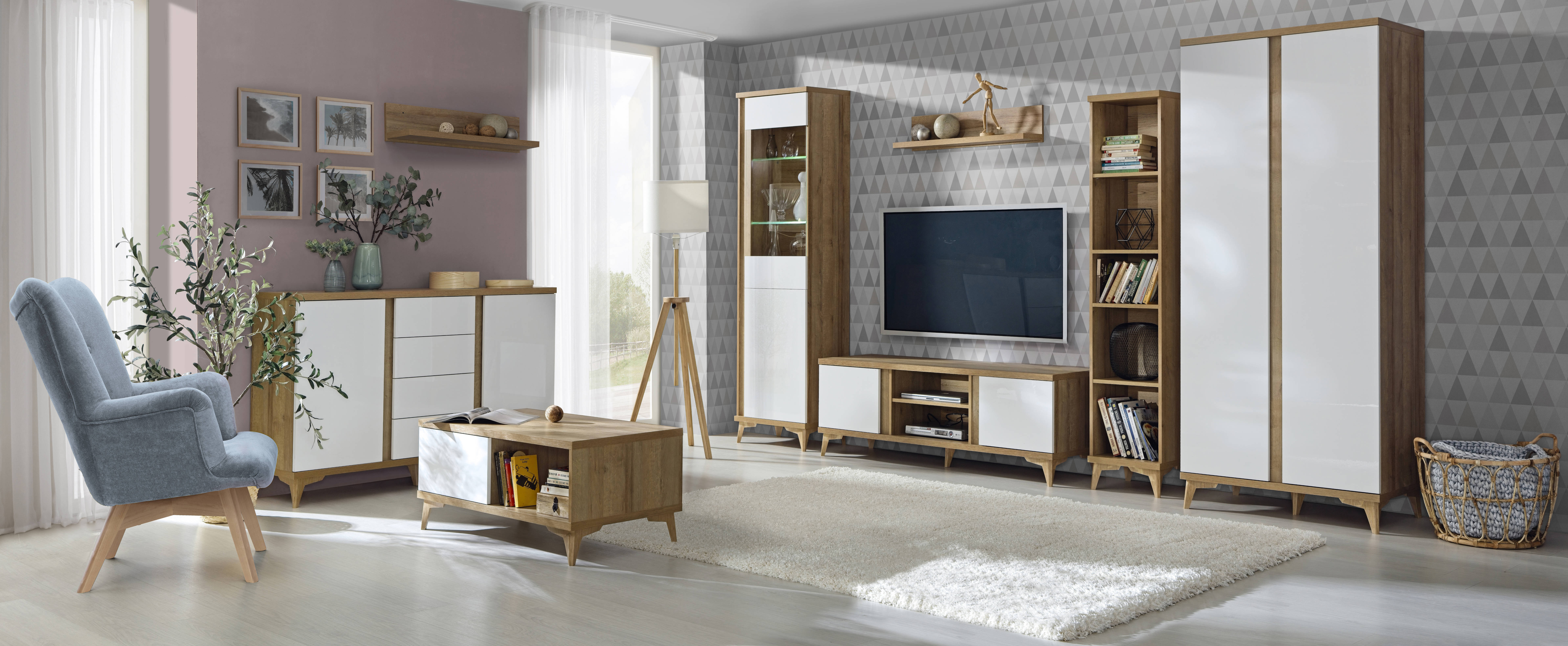 Lesklá biela + Dub Riva
