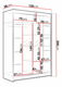 laminovaná doska s hrúbkou 16 mm, hrany zakončené ABS dýhou, systém posuvných dverí, hliníkové vodidlá Sevra typu Micra, zrkadlo na prednej strane, rukoväť vo forme hliníkového pásu, pozdĺž dverí hliníkové držadlá bránia dverám v ohybe, vybavené tyčou a priestrannými policami, RGB LED osvetlenie ako doplnková možnosť za príplatok (15 variabilných farieb + diaľkové ovládanie)