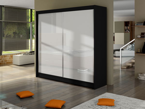 Šatníková skriňa Vance (čierna + biela) s výškou 200 cm a hĺbkou 58 cm je skvelou voľbou pre tých, ktorí hľadajú posuvnú skriňu s moderným designom a praktickými vlastnosťami. Táto skriňa je vyrobená z laminovanej nábytkovej dosky a využíva posuvný systém otvárania dverí, ktorý nezasahuje do priestoru. Bezúchytkové posuvné dvere zabezpečujú pohodlný prístup k vnútornej časti skrine. Vnútro skrine obsahuje policu a závesné tyče, čo umožňuje ľahké usporiadanie a organizovanie vášho šatníka. Šatníková skriňa Vance je k dispozícii v niekoľkých farebných variantoch. Korpus skrine a deliace priečky a police sú vyrobené z 16 mm laminovanej dosky s PVC okrajom, kým predná strana dverí je lesklá (lacobel sklo). Bežiaci systém SEVROLL MICRA má doživotnú záruku a hliníková rukoväť po celej dĺžke prednej časti dodáva skrini elegantný vzhľad. Táto šatníková skriňa má 2 presuvné dvere.