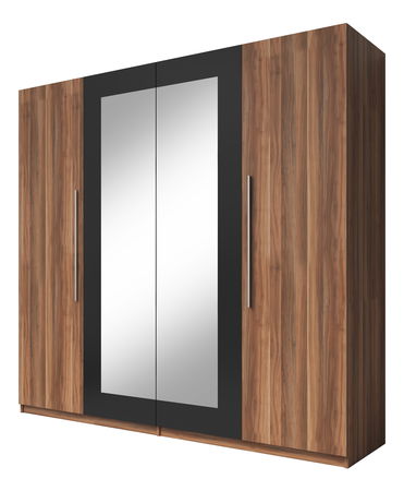 Šatníková skriňa Verwood Typ 20 (orech + čierna) výška 214 cm hĺbka 58 cm Orech červený + Čierna je ideálnym riešením pre tých, ktorí potrebujú dostatok úložného priestoru pre svoje oblečenie. Skriňa pozostáva z dvoch dvojdverových skriniek s jednou vešiakovou tyčou a štyrmi poličkami. V ľavej časti je polička s vešiakovou tyčou a v pravej časti sú štyri poličky. Skriňa má zrkadlo, ktoré Vám pomôže pri posledných úpravách a taktiež opticky zväčší priestor. Materiál laminovaná drevotrieska a čiastočne použité PVC hrany zabezpečia kvalitu a odolnosť. Modelový rad Verwood ponúka moderný dizajn a súčasné trendy. Rozmery sú nasledovné: prvý balík má rozmery 8cm x 61cm x 226,5cm a váži 49kg, druhý balík má rozmery 6cm x 68cm x 220cm a váži 43kg, tretí balík má rozmery 7cm x 58cm x 235,5cm a váži 36kg a štvrtý balík má rozmery 17cm x 61cm x 124cm a váži 49kg. Šatníková skriňa Verwood Typ 20 (orech + čierna) Vám poskytne dostatok priestoru a zároveň bude skvelým doplnkom pre Vaše interiéry.