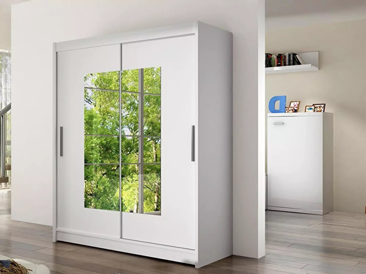 Šatníková skriňa Wopim III (biela) s výškou 200 cm a hĺbkou 58 cm je dokonalým doplnkom do akéhokoľvek moderného spálňového interiéru. Táto celouzavretá biela skriňa má posuvné dvere, ktoré zabezpečujú ochranu vašich vecí pred prachom a znečistením. Skriňa disponuje dostatočným množstvom policov na usporiadanie vašej garderóby, ktorá zostane vždy v poriadku. Šatníková skriňa je vybavená moderným zrkadlom, ktoré umožňuje kontrolovať váš outfit bez nutnosti otvárať dvere. Minimalistický dizajn tejto skrine robí z nej dokonalý kúsok do každej spálne. Šatníková skriňa Wopim III je vyrobená z kvalitnej drevotriesky s hrúbkou 16 mm, čo zaručuje jej pevnosť a trvácnosť. Vnútorný dizajn skrine je vyrobený z drevotriesky a je tiež dostatočne pevný a trvácny. Táto skriňa obsahuje 5 poličiek a 1 tyč na zavesenie vašich vecí. Šatníková skriňa Wopim III neobsahuje osvetlenie a je balená v 2 balíkoch. Balík 1 má rozmery 60x200x10 cm a váži 69 kg, zatiaľ čo balík 2 má rozmery 80x190x6 cm a váži od 48 do 55 kg.