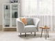 Vďaka jemne zaobleným tvarom a zlatým nohám pôsobí táto nádherná pohovka luxusným dojmom. Je čalúnená buklé tkaninou, takže je pohodlná a príjemná nielen na pohľad, ale aj na dotyk. Hrubé čalúnené sedadlo poskytuje pohodlné sedenie, vďaka čomu je ideálnym miestom na čítanie alebo sledovanie televízie. Elegantný dizajn pohovky skvele doplní interiéry v eklektickom, tradičnom alebo mid-century štýle.