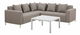 Vylepšite svoj vonkajší priestor touto sedacou súpravou. Rohová sedacia súprava ponúka dostatok miesta až pre 5 osôb a vďaka modulárnemu dizajnu sa dá rozložiť akokoľvek chcete. Je vyrobená z odolnej polyesterovej tkaniny v štýlovej farbe, je odolná voči UV žiareniu a ľahko sa udržiava. Súprava sa dodáva s konferenčným stolíkom vyrobeným z hliníka s práškovým lakovaním v krémovobielej farbe a vankúšikmi na zvýšenie pohodlia. Je vyplnená penou Quick Dry, ktorá zvyšuje odolnosť nábytku proti dažďu a rôznym poveternostným vplyvom.