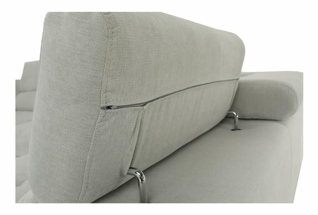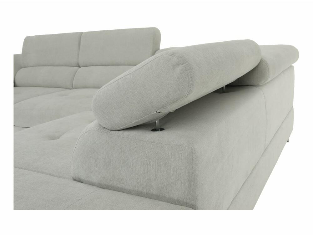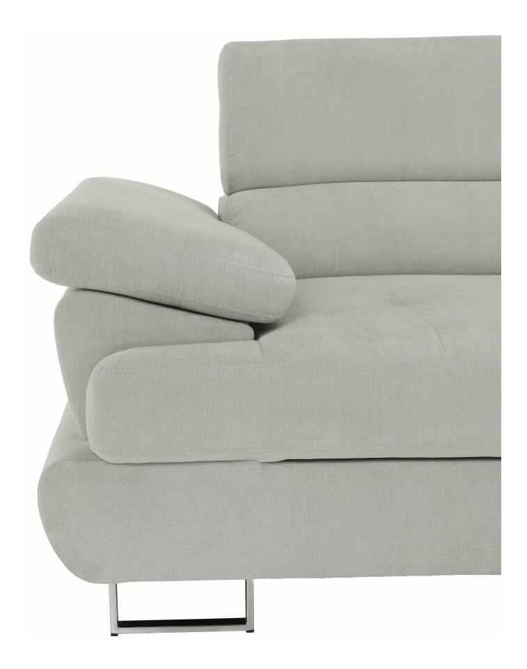 Rohová, Dekoratívne prešitie, Zaujímavá opierka, 3 polohovacie opierky hlavy, 5 stupňové polohovanie opierok, Celočalúnená, Pružinová výplň, Nožičky kovové s povrchovou úpravou chróm, Ľavé prevedenie, Dodávané bez dekoratívnych vankúšikov
