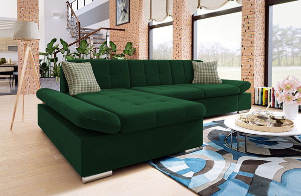 Rohová rozkladacia pohovka Jude je návrh skupiny čalúneného nábytku do veľkej obývacej izby. Sedačka je v tvare písmena L s rozmermi 278 cm x 161 cm, čo dáva veľa priestoru na posedenie pri káve s priateľmi alebo na ležanie na veľkej ležadle. Rozkladacia rohová sedačka Jude má jedinečnú funkciu na nastavenie lakťových opierok, čo umožňuje prispôsobiť ju aktuálnym potrebám. Podrúčky môžete umiestniť do vodorovnej polohy a zdvihnúť, aby ste pohodlne položili ruky alebo hlavu. Sedačka Jude má tiež funkciu na spanie, ktorá vám umožní rozpres na 240x129 cm, vďaka čomu získate pohodlnú plochu na spanie až pre 2 osoby.