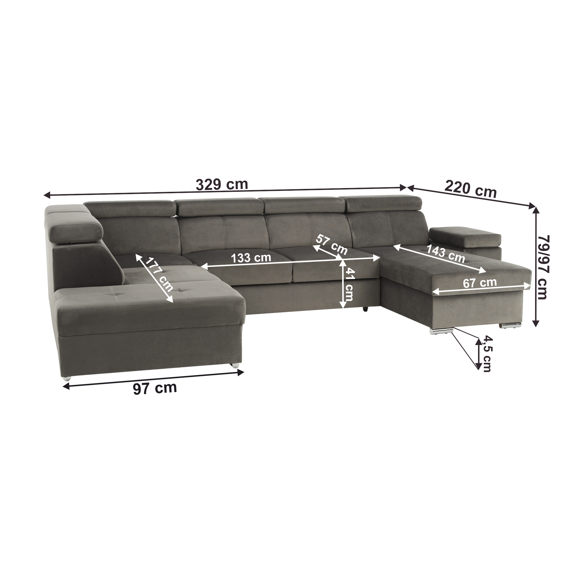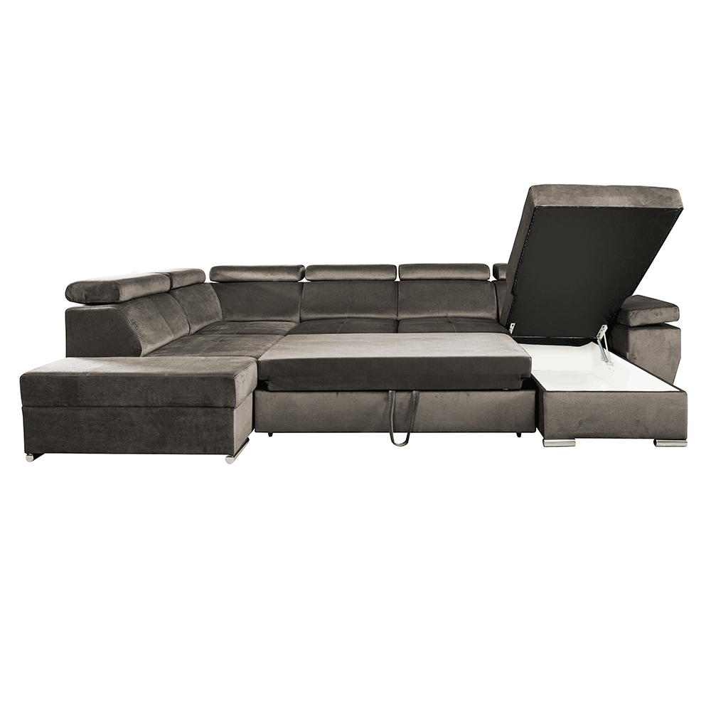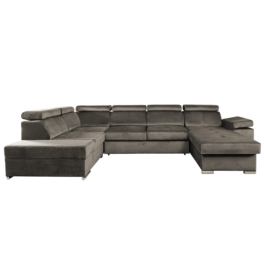 Sedacia súprava Lamour (sivohnedá) (P) je moderná a pohodlná sedačka pre relax v pohodlí vášho domova. Jej veľkorysé rozmery v tvare U a elegantná farba sivohnedá Taupe dodajú vašej obývačke exkluzivitu a luxus. Súprava má celočalúnené prevedenie kvalitnou látkou KRONOS, a disponuje až šiestimi polohovacími opierkami hlavy, ktoré sa dajú prispôsobiť v piatich stupňoch. Lamour má aj úložný priestor a je rozkladacia, pohodlne sa na nej vyspia dvaja ľudia. Plocha na spanie má rozmer 129x256 cm. Sedačka má 6 kovových nôh vo výške 4,5 cm od zeme. Jadro sedačky je tvorené pružinami falista a penou v hrúbke 10 cm. S týmto kvalitným prevedením a moderným dizajnom sa sedačka Lamour stane ústredným prvkom vašej domácnosti.