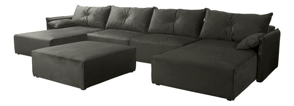 Sedacia súprava Leonaro Puf U (grafit) je vhodná pre náročných zákazníkov, ktorí uprednostňujú kvalitu, vysoký komfort a estetický dizajn. Jemné prešívanie a štýlové dekoratívne prvky poskytujú maximálne pohodlie pri odpočinku. Vďaka širokej škále farieb poťahového materiálu je možné model Leonaro U prispôsobiť interiéru zariadenému v rôznych štýloch. Výhodou je aj typ výplne sedadla, ktorý zaručuje adekvátnu podporu tela a lepšiu kvalitu relaxácie. Súprava obsahuje 4 veľké a 2 malé dekoračné vankúšiky a taburetka je súčasťou ceny. Konštrukcia je z drevotriesky a drevenej lišty. Výplň tvorí polyuretánová pena a falisté pružiny. Rozmery sedacej súpravy sú 85 cm na výšku a 179 cm na hĺbku. Plocha spania je 110x400 cm, výška sedenia 38 cm a nosnosť 400 kg. Tkanina Royal je velúrová s krátkym vlasom, odolná voči svetlu a pevná. Je možné ju čistiť vlhkou handričkou a špeciálnymi prostriedkami pre čalúnený nábytok. Taburetka má rozmery 100x98x38 cm a zadná časť sedačky je čalúnená, takže ju môžete umiestniť do priestoru.