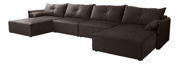Sedacia súprava Leonaro U (hnedočierna) s výškou 85 cm a hĺbkou 179 cm je ideálnou voľbou pre tých, ktorí hľadajú estetiku, kvalitu a vysokú úroveň komfortu. Tento model sedacej súpravy ponúka jemné prešívanie, maximálne pohodlie pri odpočinku a štýlové dekoratívne prvky, ktoré robia z Leonaro U jednu z najpohodlnejších sedacích súprav na trhu. Vďaka širokej škále farieb poťahového materiálu je možné model Leonaro U ľahko prispôsobiť aj interiéru zariadenému v škandinávskom, industriálnom, modernom alebo retro štýle. Typ výplne sedadla, ktorý kombinuje odolnú vlnitú pružinu a vysokoelastickú penu T2844, zaručuje adekvátnu, stabilnú podporu tela a vysokú kvalitu relaxácie. Sedacia súprava obsahuje 4 veľké a 2 malé dekoračné vankúšiky. Konštrukcia z drevotriesky a drevenej lišty zabezpečuje pevnosť a stabilnosť. Výhodou je aj jej možnosť rozkladu a úložného priestoru. Tkanina Royal, ktorá sa používa na poťah, je velúrová tkanina podobná plyšu s krátkym vlasom, ktorá je veľmi odolná voči svetlu a má vysokú pevnosť. Sedacia súprava Leonaro U má nosnosť až 400 kg a dodáva sa v piatich balíkoch.