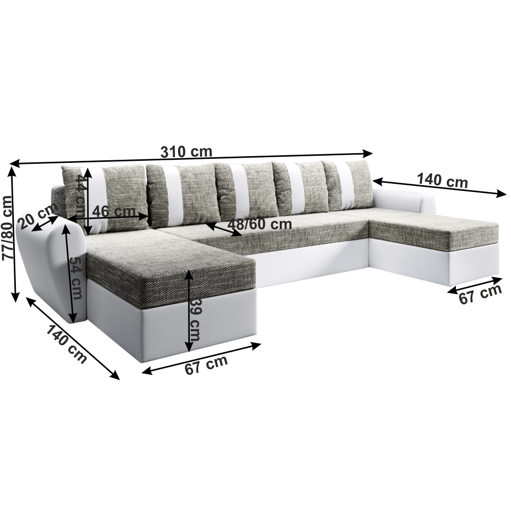 Luna U je univerzálna rohová sedacia súprava. Charakteristická je svojím dizajnom do tvaru U a jedinečná úložným priestorom. Navyše je rozkladacia, ideálna na občasné prespanie alebo nedeľné leňošenie. Farebné prevedenie pohladí vaše zmysly, a to v podobe čiernej ekokože v kombinácii so sivohnedou látkou. Súčasťou Luna je päť vankúšov, ktoré nemusia slúžiť len ako spestrenie sedacej súpravy, ale aj ako pohodlné opretie chrbta. Postavená je na nožičkách s rozmerom 2,5 cm. Je vždy pripravená privítať vašu návštevu, navodiť pocit bezpečia a dodať vašej domácnosti jedinečnosť.