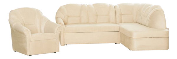 Pekná rohová sedacia súprava v klasickom štýle, je zložená z rohovej sedačky a kresla. Majú pohodlne tvarované opierky chrbta a sú čalúnené látkou Altara. Sedačka je rozkladacia a obsahuje praktický úložný priestor.