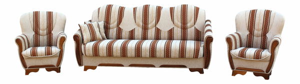 Doprajte vašej obývacej izbe eleganciu a štýl pomocou klasickej sedacej súpravy Kalabria. Je celočalúnená s drevenými prvkami, ktoré jej pridávajú na exkluzivite. Sedacia súprava obsahuje jednu rozkladaciu sedačku s úložným priestorom a dve kreslá. Kvalitné pružiny typu Bonnel vám zaručia pohodlné sedenie a systém Klik-Klak jednoduché rozloženie sedačky na spaciu plochu.